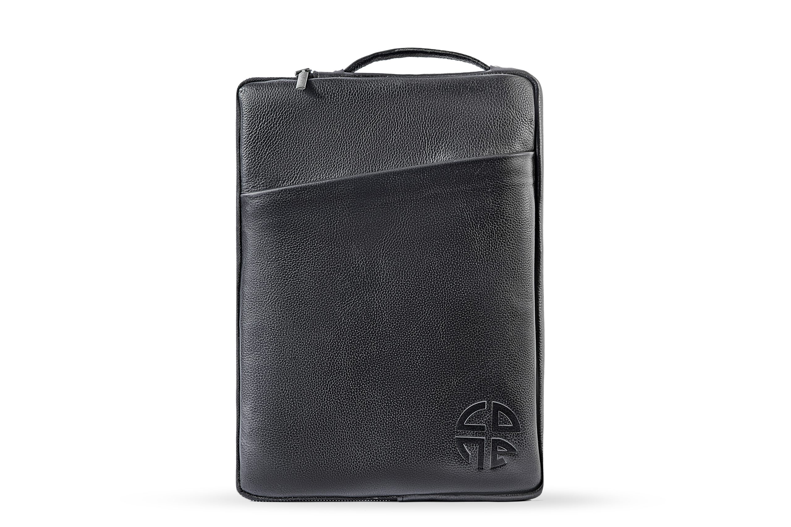 Crafted from genuine cowhide leather, this streamlined sleeve combines protection with sophistication. The protective padded compartment safeguards your laptop or iPad, while the soft velvet interior lining adds an extra layer of care. A convenient front zipper pocket and dedicated space for chargers and cables ensure your accessories stay organized. The thoughtfully designed handle makes carrying effortless.